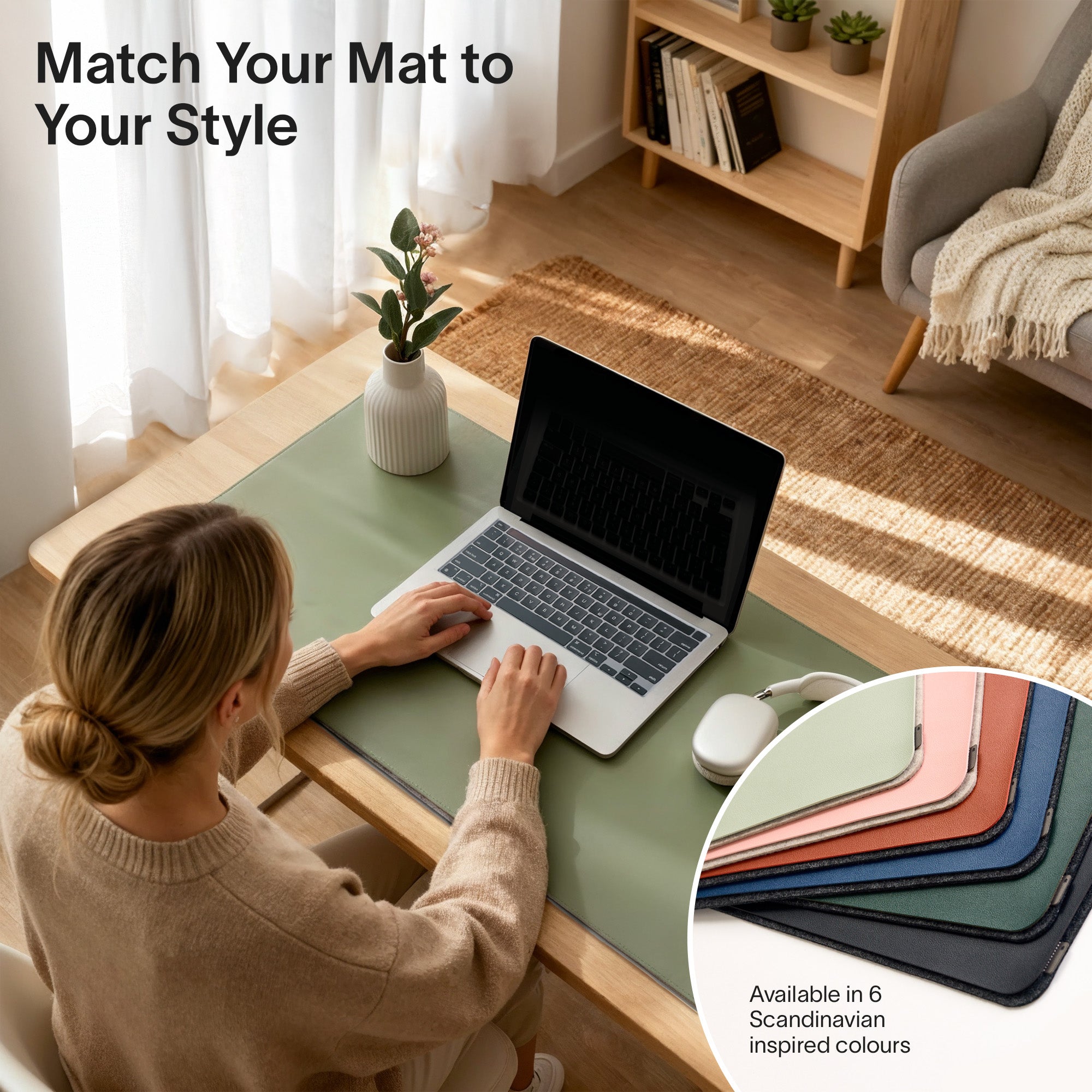 Experience the pinnacle of desk luxury with our dual-layered leather desk mats, where waterproof vegan leather meets soft felt, offering superior protection, comfort and a cleaver document storage solution.