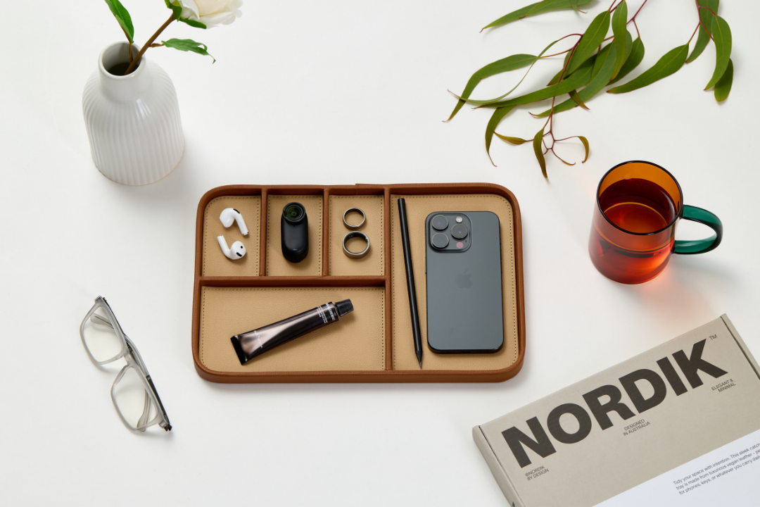 Organize your watch, keys, pen, cords, smartphone, and favorite earrings. Stay efficient and stylish with everything in its place.